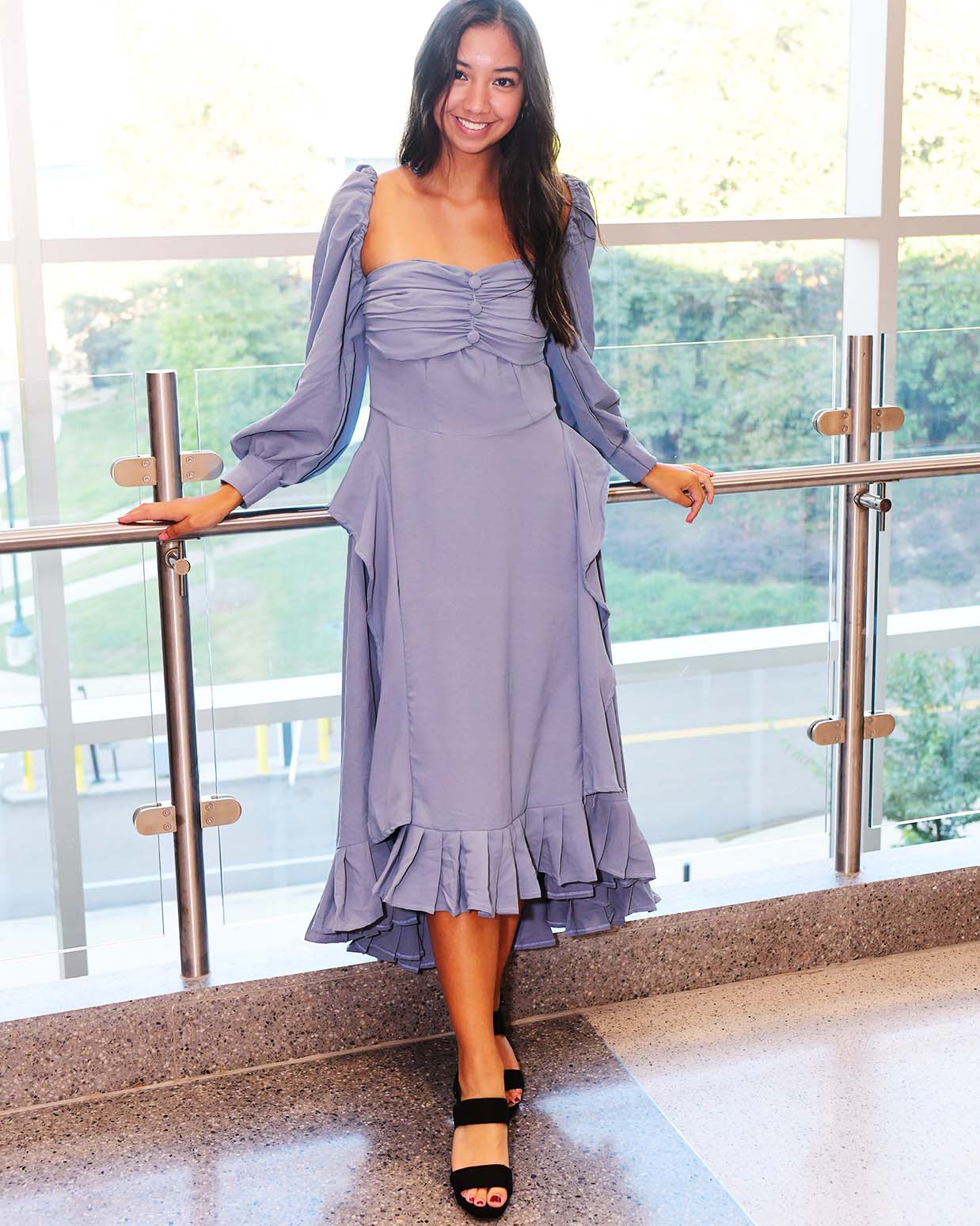 Step out in style in our Bisi dress which is perfect for the spring and summertime. Pick between blue, purple, or rose colors that accentuate the playful style of this dress. Bisi means - she who is firstborn. The firstborn is reliable, hard-working, independent, structured, and so on; Bisi is perfect for any woman that can relate.