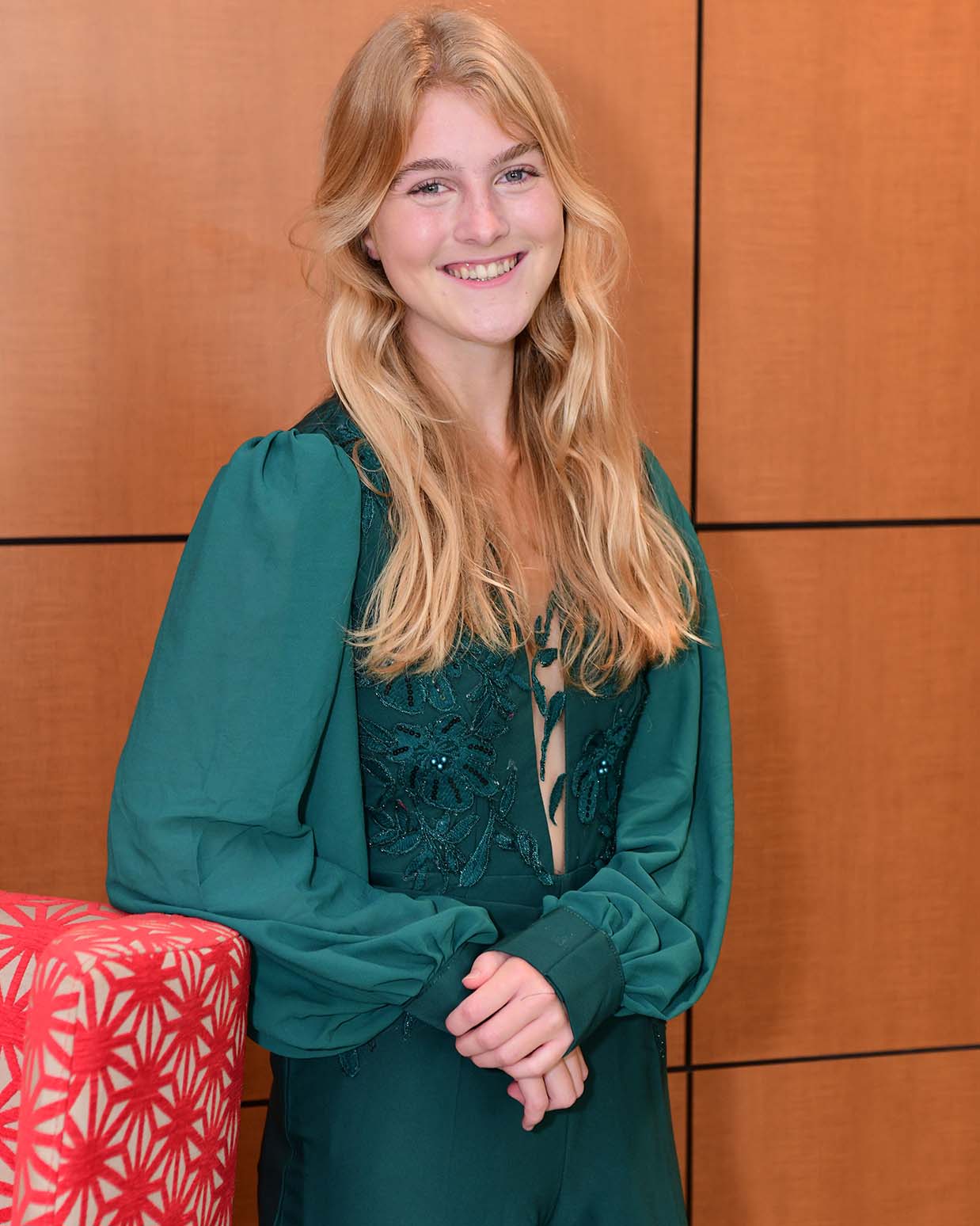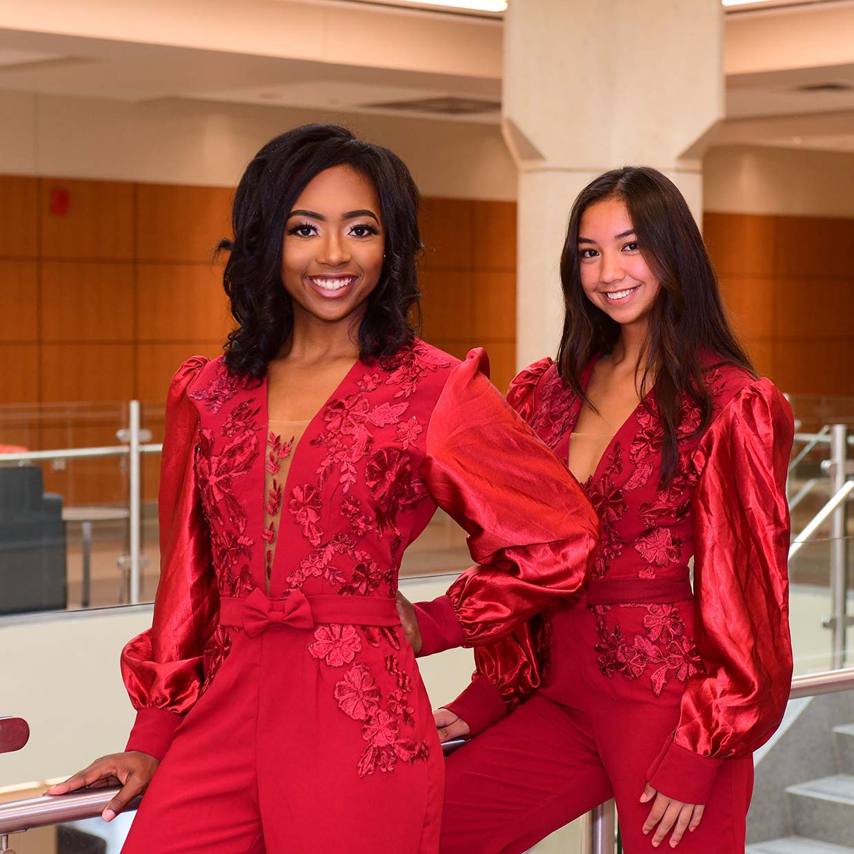 Flared Jumpsuit with silk/chiffon sleeve, embellished with lave and center illusion mesh